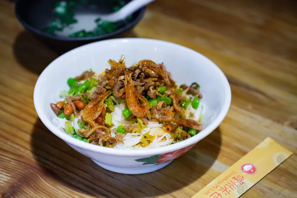 米烂虽源于乡土小吃,但小铺在制作时所采取的工艺却无比精细,光是豆角碎、炸花生等辅料就多达十几种。还有晶莹剔透又弹牙的米线,从开煮前便已经历选米、泡米和磨米等多个步骤。正是这样繁琐的传统工序,才造就了儋州米烂的纯正风味。嗦一口,幸福感爆棚!