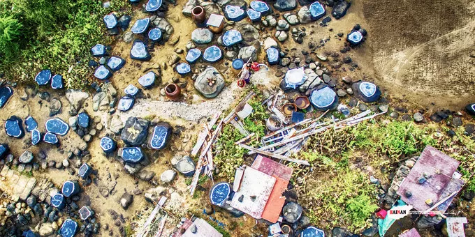 几座田间,便有一处小型蓄水池,其间储藏着用以制盐的盐水。劳作于此的人们反复往返于盐田以及水池间。身影倒影于水池中,到也似一座生动的画卷。
