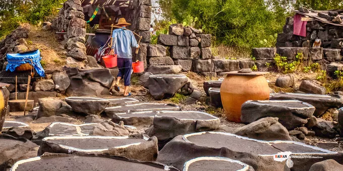 走进儋州千年古盐田,仿佛穿越时空隧道,走入海南岛昔日繁华的盐都,亲自见证这古老的工艺,眼前不进浮现出昔日繁华的景致。
