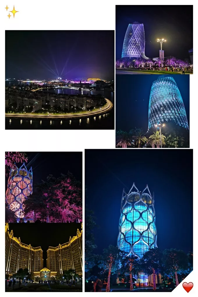 夜景灯光秀:大部分建筑物(包括路边的 大树 小树)都会一起有节奏的亮灯闪烁,尤其是观光塔和双子塔会有图案变幻。整个场面还是很壮观的,但是没有期待中的那么惊艳,也许是因为“只缘身在此山中”吧。晚上逛还有一个好处:不晒!凉快!
