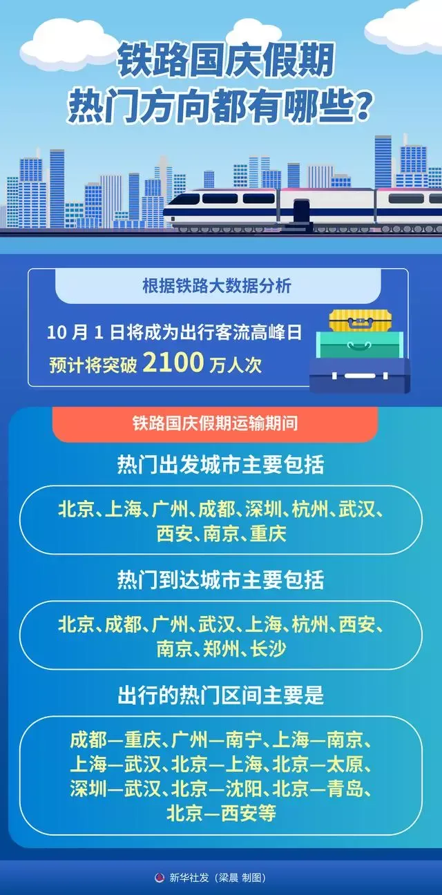 铁路国庆假期热门方向都有哪些? 一正一邪 • 2024-09-21 • 资讯 • 阅读 752 新华社图表,北京,2024年9月20日今年,铁路国庆假期运输将从9月29日开始,至10月8日结束,为期10天,预计发送旅客1.75亿人次。 本文Hash:9b7ea3850fc6bdd6ba58cd92b3ae4c3079aa6b98 声明:此文由 一正一邪 分享发布,并不意味嗨游赞同其观点。文章内容仅供参考,此文如侵犯到您的合法权益,请联系我们。