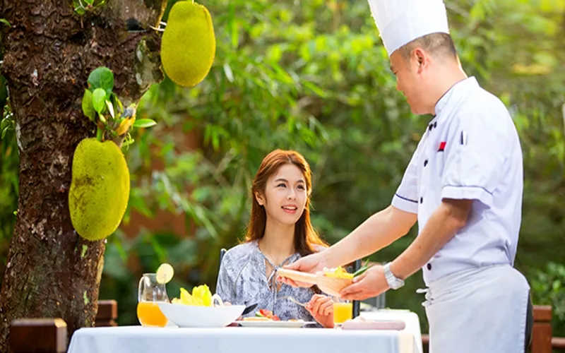 酒店位于风光旖丽的七仙岭国家森林温泉公园内,由一栋栋依山而建的独立别墅组成。住在独具黎苗风情的豪华客房,可泡林间直引的野溪温泉,还可体验五行养生、中医理疗,在菠萝蜜树下享用当地特色美食,开启热带雨林里的舒适"慢生活"。