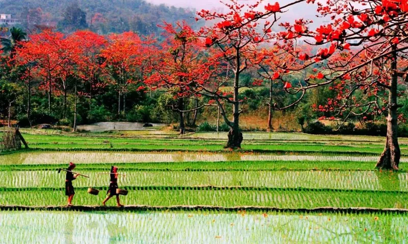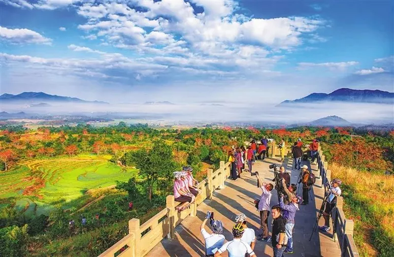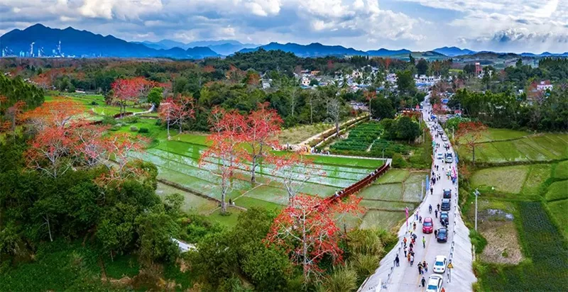 活动内容:组织"木棉花快闪队",在观景点安排线下拍照打卡等赏花互动表演和活动;设置木棉文创小铺,向游客销售文创周边;开展"木棉树下欧欧歌"民族散点演艺,在观景点的梯田水岸、木棉树下设置民族情歌对唱、民族乐队、竹竿舞等表演和互动,丰富游客赏花体验。同时发动有关乡镇组织村民进行歌舞表演,活跃活动氛围,吸引游客参与。