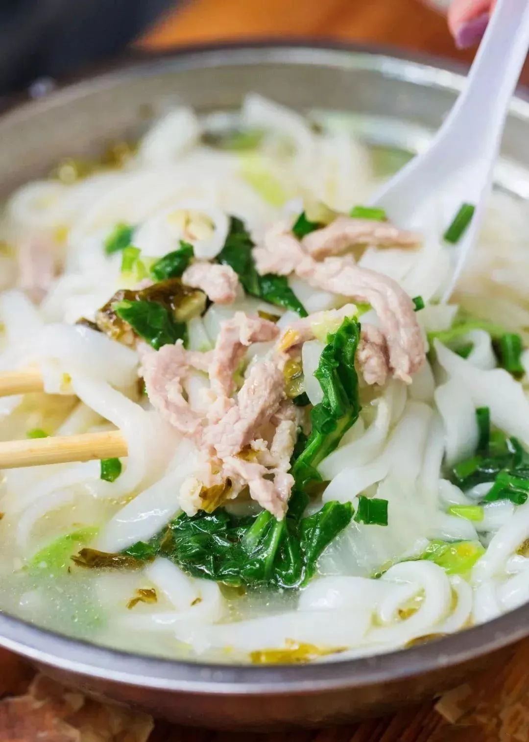 酸菜、青菜、瘦肉,这经典的配方造就了经典的味道。早上能嗦一碗够味的粉汤,开启元气满满的一天。相比越南粉来说,三亚的粉种类较多,炒河粉配料满满,一筷子下去,肉、蛋、蔬菜、粉条都有了,满足啦!
