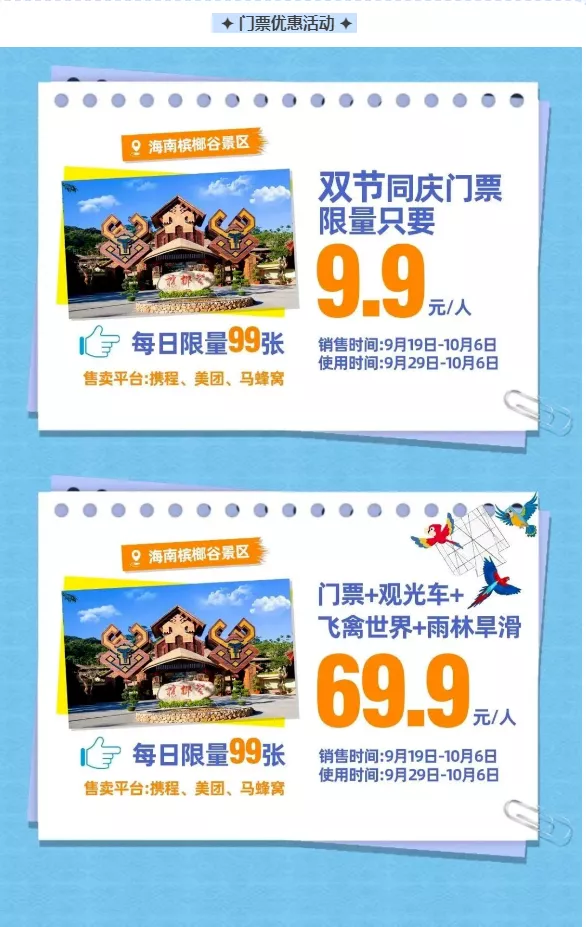 活动期间凡是身着民族服装,包括汉服、黎族苗族服装等,均可享免费入园福利,有才艺展示的可以现场报名参加表演,所有参演者均有机会获得纪念品。