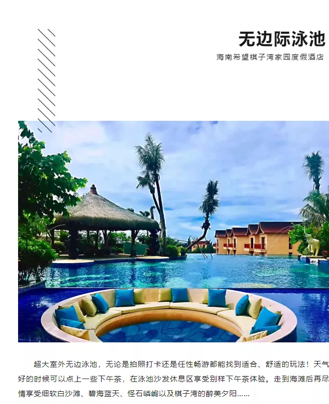 大海一直是大家向往的旅行目的地,尤其是入住海边酒店,傍晚时分看海面上橘红的夕阳映衬无边的碧海。加上海南独特的热带风情,让人们对海南旅行充满了期待。