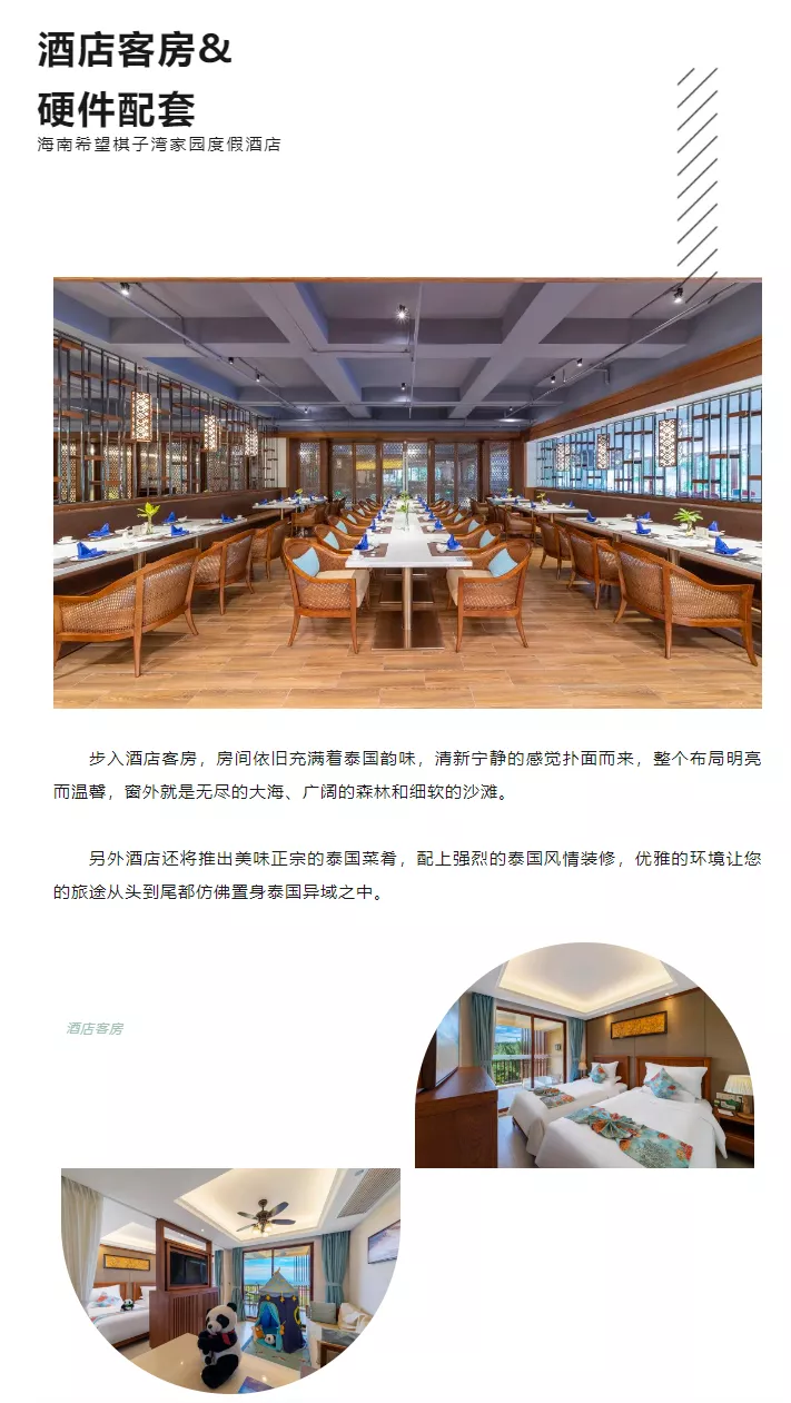 今天就给大家重新介绍一下海南希望棋子湾家园度假酒店,这座整体以泰式设计风格建筑为主,拥有泰式风情景观步道、泰式风情的客房,甚至还有地道风味泰餐的绝美五星级标准酒店~让你不用跑到泰国,也能享受到如临泰国般的身心体验。