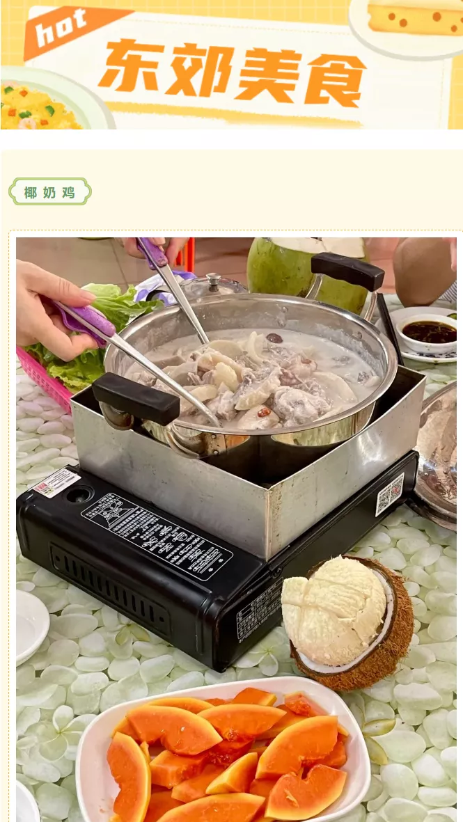 推荐菜:椰子鸡、白切文昌鸡、甜酸鱼、干煸羊肉、酸笋芋头梗、椒盐虾