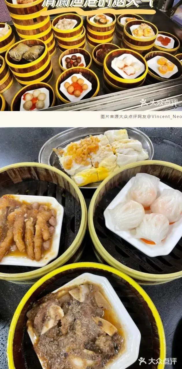 推荐菜:芋泥南瓜酥、虾饺、椰子包、清泉干腌粉、鲜虾肉烧麦、豉油排骨、炸面饼
