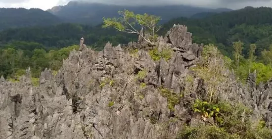 仙安石林,位于保亭和三亚的接壤处,在海拔700米的仙安岭上,占地39公顷,1992年才被专家发现。它是典型 的热带“喀斯特地貌”,溶沟似刀劈斧砍,最深达25米;奇形怪状的石芽最高达35米。石林景区中还有许多溶洞,大小各异,千四百折,洞下溪河渡木舟。有小千龙洞、仙女洞和蟠龙洞。洞大小不同,大的可纳几百人;洞洞迁回曲折,遍布钟乳,形态各异,洞中有洞,洞下有河,可行木舟。石林景区的天然植被覆盖度达70%,呈现出热带低山雨林景观,填补了中国热带岩溶石林地貌的空白,富有重要的科学价值。