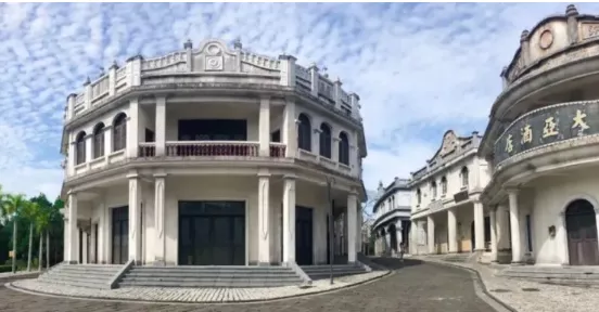 琼崖古城,位于海南省保亭县石岭镇,坐落于吊罗山南边的山脚下。琼崖古城建于2014年,规模不大,是为拍摄《琼崖浴血》而建,建筑风格多数是民国风和南亚风,主要由一条民国街和一片军政办公楼街区构成。这里颇有民国特色的建筑和恰到好处的旧时光,仿佛穿越回到民国时代。古城入口有石桩、石雕牌坊,均刻着“琼崖古城”四个字。城市广场和古街全是用锈蚀的石块砌成的。右侧的古镇有一片繁茂的椰树林。在椰林前,有一座古罗马帝国设计风格的民国时期石牌楼。在罗马帝国圆柱体的左边,有一块匾,上边写着“国民党第46军指挥所”。《消失的她》影片中大量的重场戏也都在这里完成,比如警察局戏份,男主被抢钱包的戏份等。