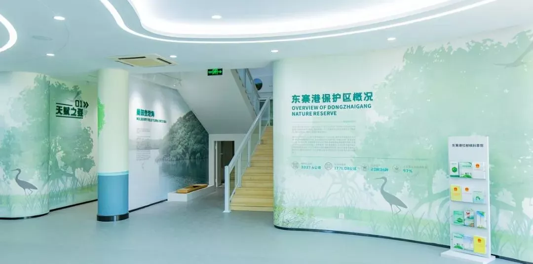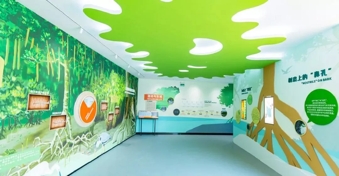 馆内主要展示了东寨港红树林的起源和分布、红树林生态循环体系、红树林湿地的动植物资源、红树林的社会经济价值等,为大众揭开“海上森林”的神秘面纱。