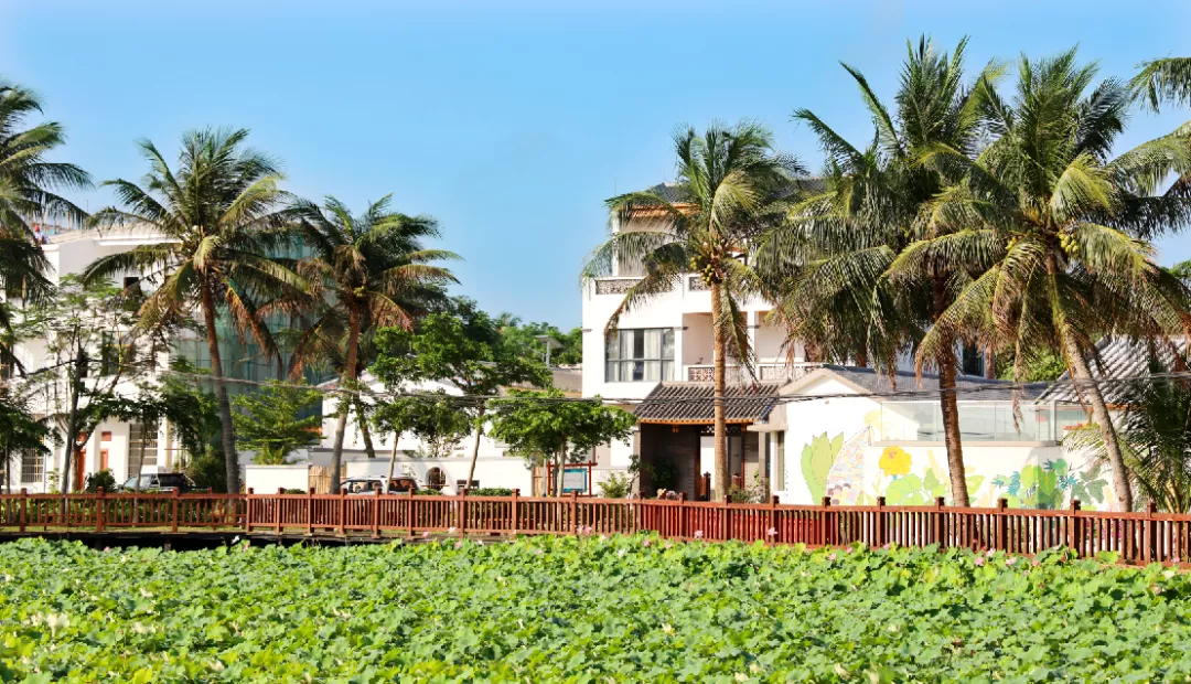 海口市秀英区永兴镇冯塘村海口芳园村位于海口市美兰区演丰镇,背靠东寨港红树林。初夏时节,芳园艺术村荷花竞相绽放,成为这个美丽乡村的一道夏日风景。