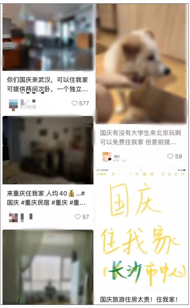 部分酒店价格上涨,不少网友也瞄准了“商机”,在社交平台上发布“国庆住我家”等类似帖子,在假期期间出租自家住宅供游客短住。
