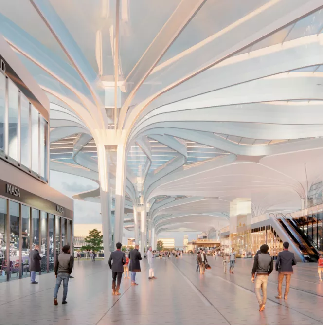 是集航空、国家铁路、市域铁路、城市轨道交通等交通功能以及站场城开发于一体的大型综合交通枢纽。