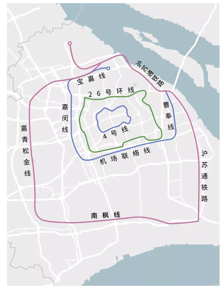 目前,我国只有9座城市有建成或在建的地铁环线,而上海未来将有4条超级地铁环线,除了已建成的4号线和规划中的26号线外,还有两条——大地铁三环线和大地铁四环线,都是由多条已建、在建或规划中的线路共同组成的。