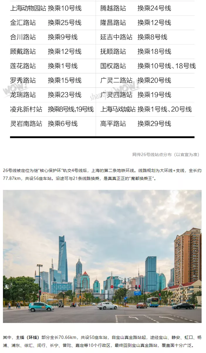 地铁设置34个站点,有18个换乘站,建成后可以与包括宝山高铁站、机场联络线、奉贤线、宝嘉线等在内的20多条轨交线路实现换乘,是名副其实的“换乘王”。